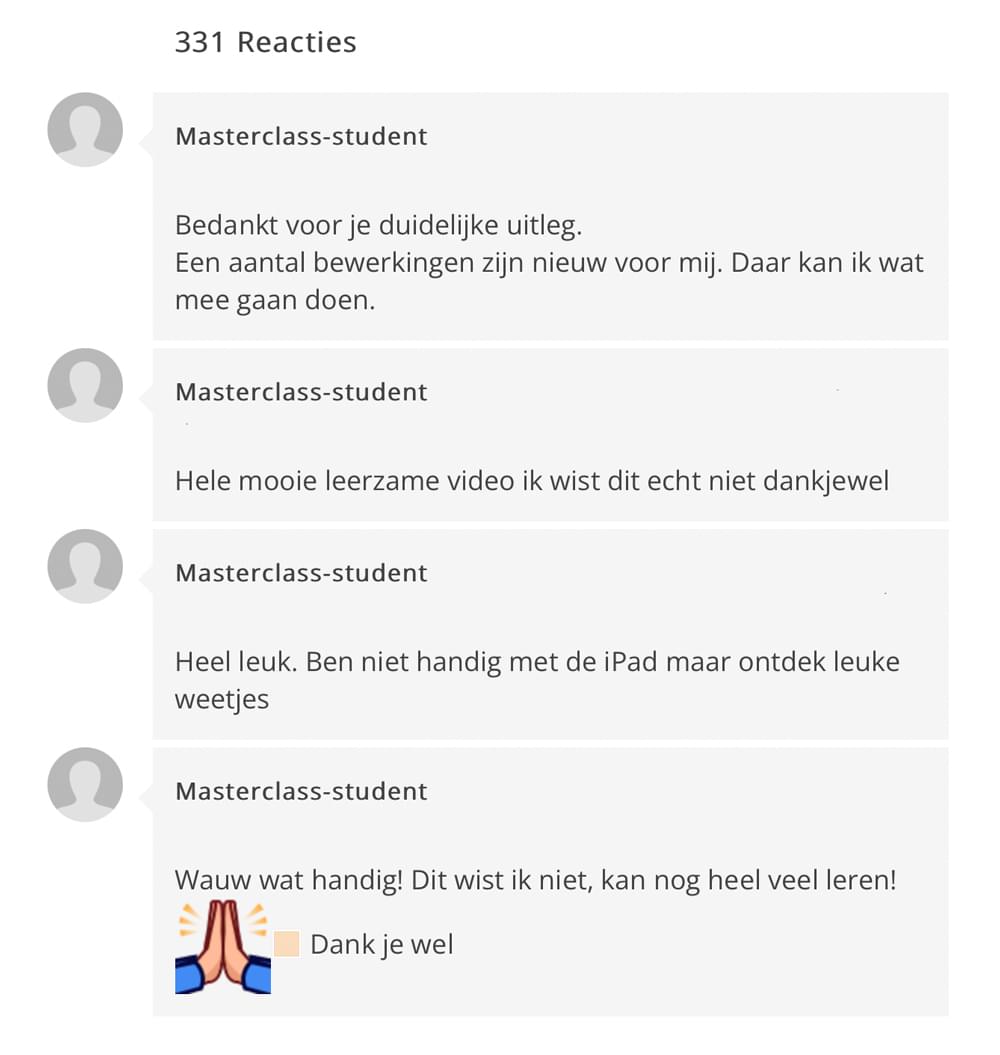 Onder elke video van de Masterclass kun je, indien gewenst, een reactie achterlaten.